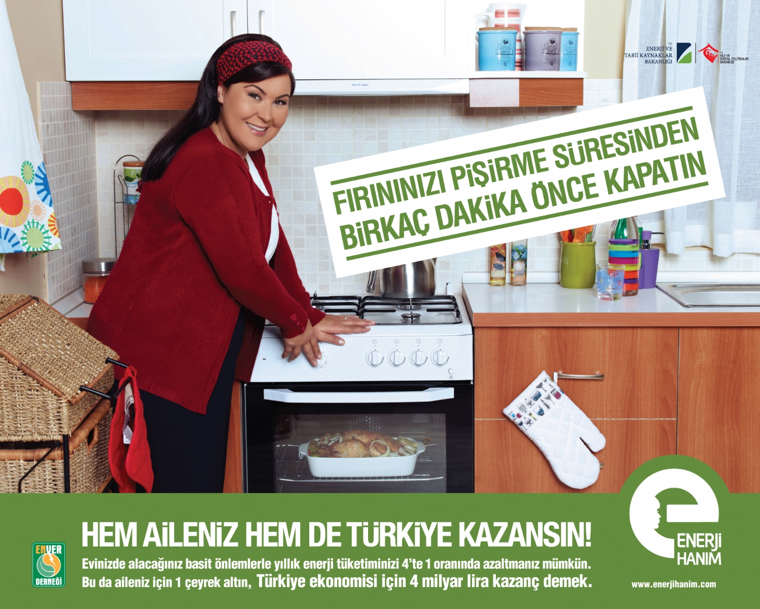 “Kadınların, ev işleri ve çocuk bakımına hapsedilip, hayatın tüm diğer alanlarından dışlanmasının propagandası niteliğindeki bu projenin filminde bir kadın “Enerji Hanım” olarak yer alıyor. Enerji Hanım filmde, sırasıyla çamaşır yıkayan, ütü yapan kadınların yanından geçerek onlara enerji tasarrufu için ne yapmaları gerektiğini söylüyor; sonra buzdolabını açık bırakan bir oğlan çocuğunu uyarıyor ve nihayet koltuğunda otururken televizyonu kumandasından kapatan bir erkeğin yanına gidip, cihazın düğmesinden kapatılması gerektiğini, kendisi kapatarak hatırlatıyor.