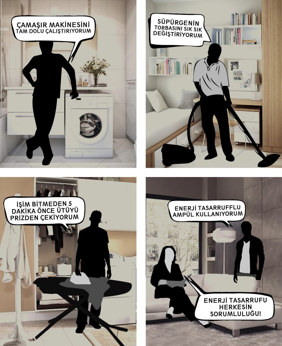 Enerji verimliliğine ilişkin Enerji Takımı isimli bir de video çekmişler. Evin küçük kızı evle ilgili konularda hassas, kadını haşarı oğlanın arkasından buzdolabı, kocasının arkasından TV kapatırken görüyoruz. Yolda enerji tasarrufu konusuna geçilince tabi ki arabayı erkekler kullanıyor. Sanayide enerji tasarrufu yine erkeklerde.