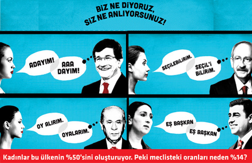 Bir diğer amacından sapan mesaj, bu kadınların erkeklerden birşeyler talep etmekten ve kırmızı ruj sürmekten başka bir işlevlerinin olmaması. Evlilik, iş, maaş, şimdi de milletvekilliğini erkeklerden mi talep edeceğiz? Kadınların temsil hakkı yalnızca erkek liderlerin bunu istemesine mi bağlı olacak?